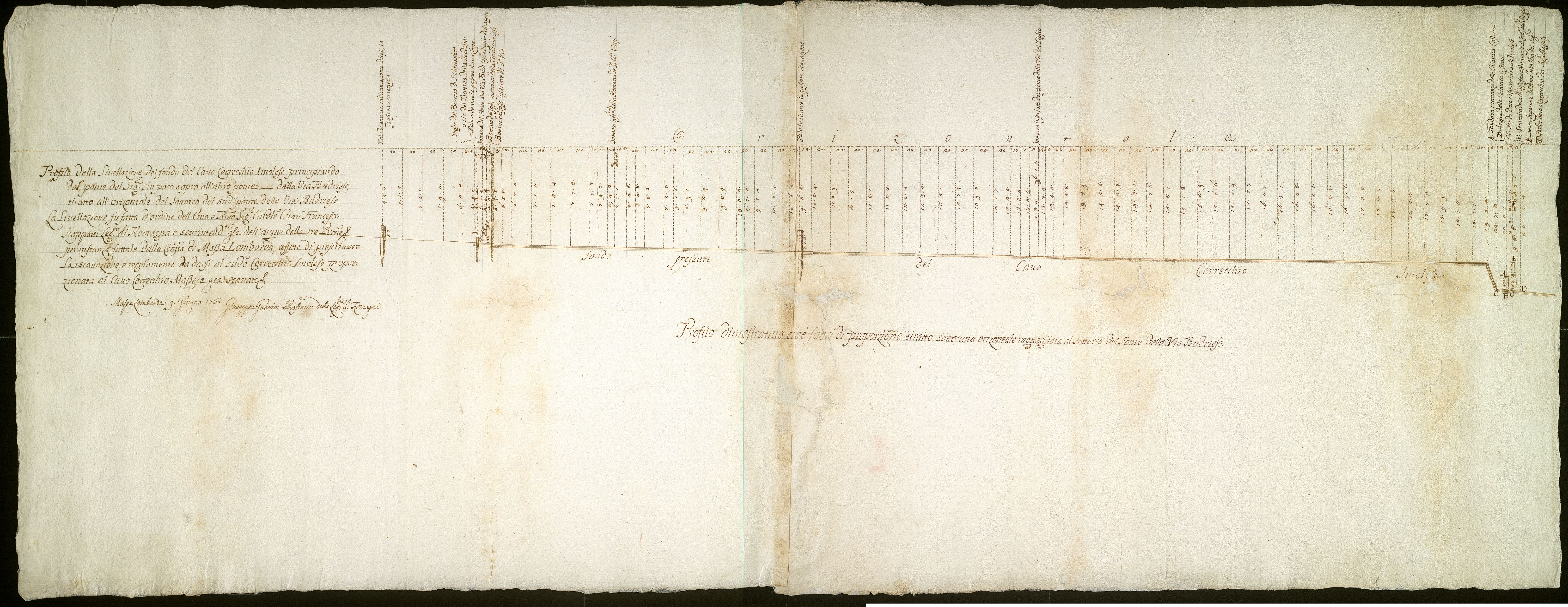 Profilo della livellazione del fondo del Cavo Correcchio imolese principiando del ponte del Signor sin poco sopra all'altro ponte della via Budriese.
