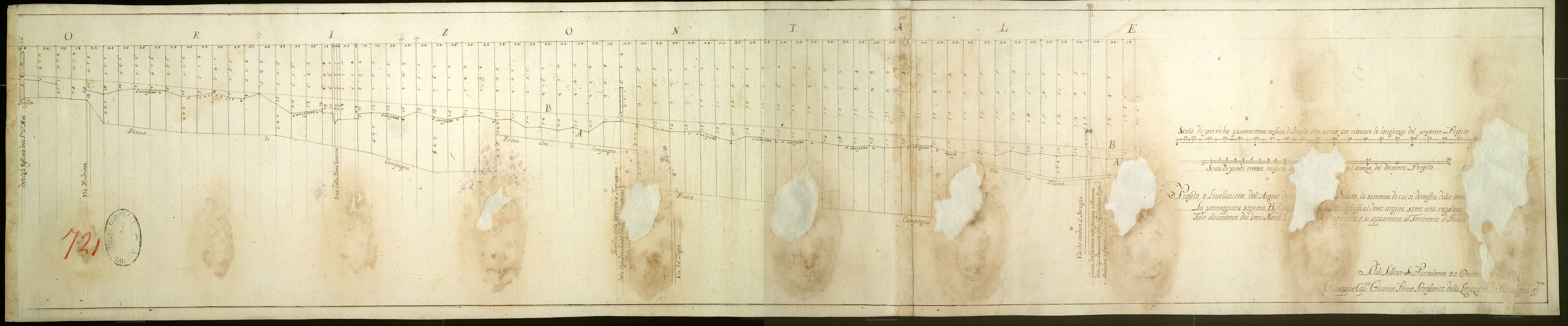 Dal Sillaro San Pantaleone 30 ottobre 1758, cap. Giuseppe Guarini perito idrostatico della Legazione di Romagna. Idem dell'argine sinistro dal violo detto Carpaneto alla Via del Signore.