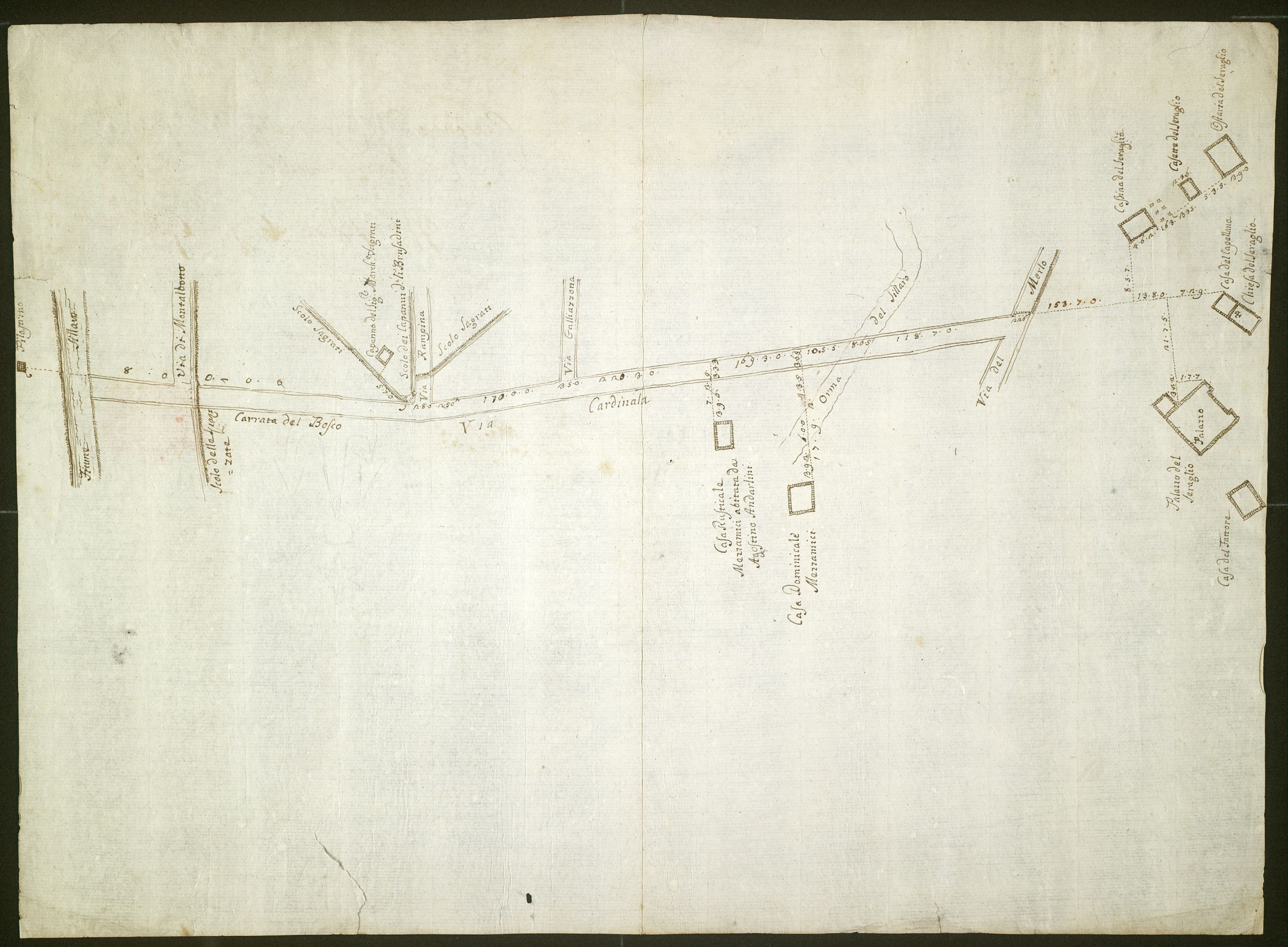 Misurazioni della via Cardinala dal Sillaro alla via del Merlo.