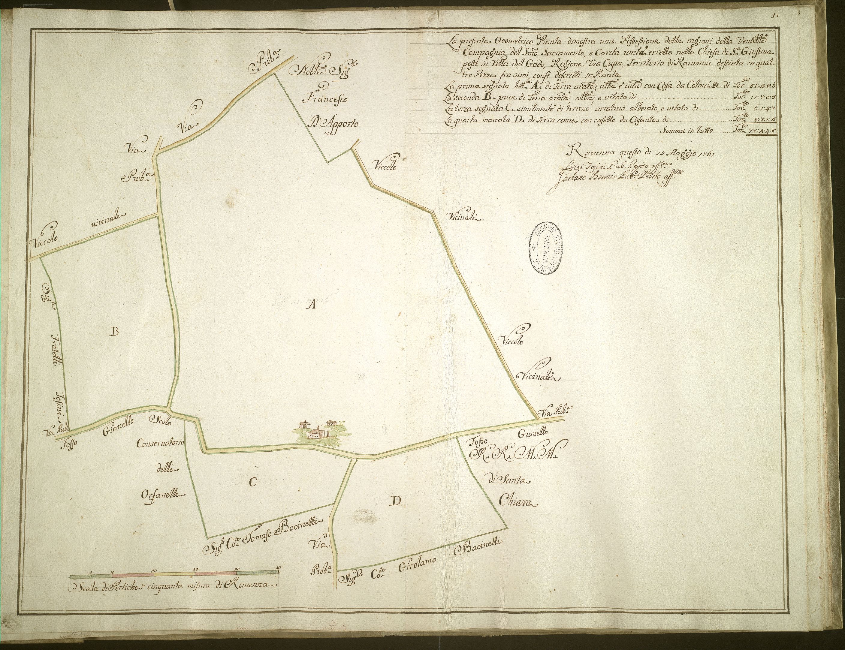 (13) Piante dei beni appartenenti alla Compagnia del SS. Sacramento e Carità unite erette nella chiesa di S. Giustina.