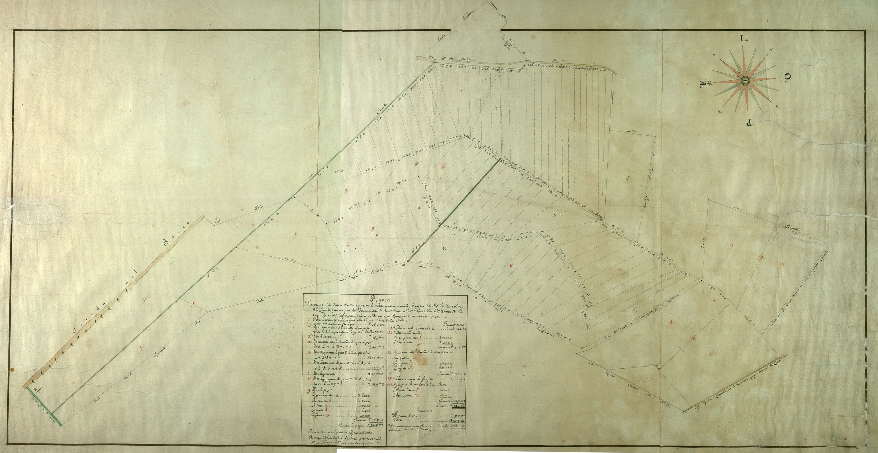 Pianta dimostrativa delli Terreni Prativi; e porzione di Valletta a Strame e cannetti di ragione delli Sig. ri Gio. Giac. e Pietro fratelli Lovatelli formanti parte del Tenimento detto di Sant'Alberto, in territorio di Ravenna Villa fuda.