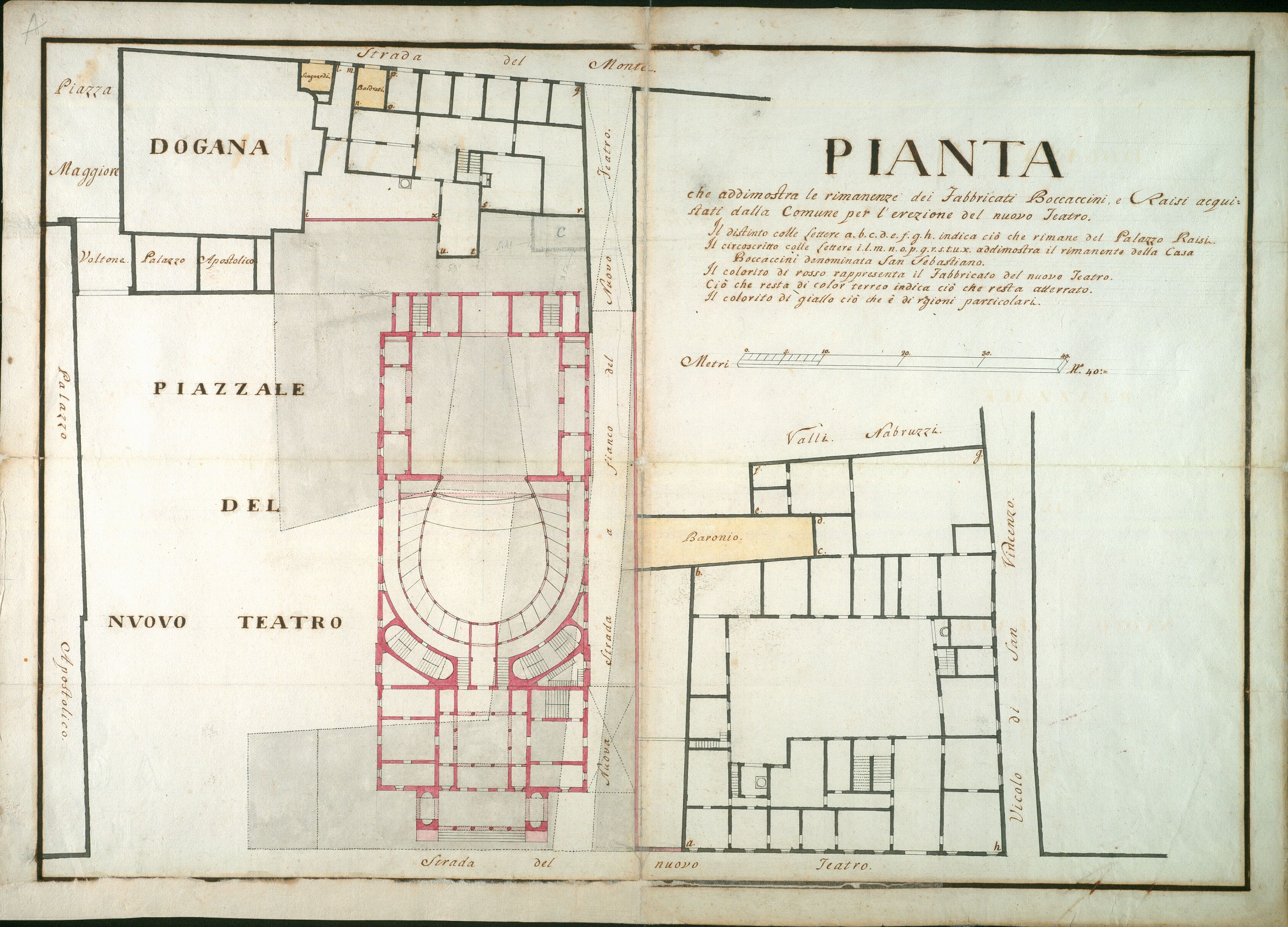 Pianta che addimostra le rimanenze dei Fabbricati Boccaccini e Raisi acquistati dalla Comune per l'erezione del nuovo Teatro