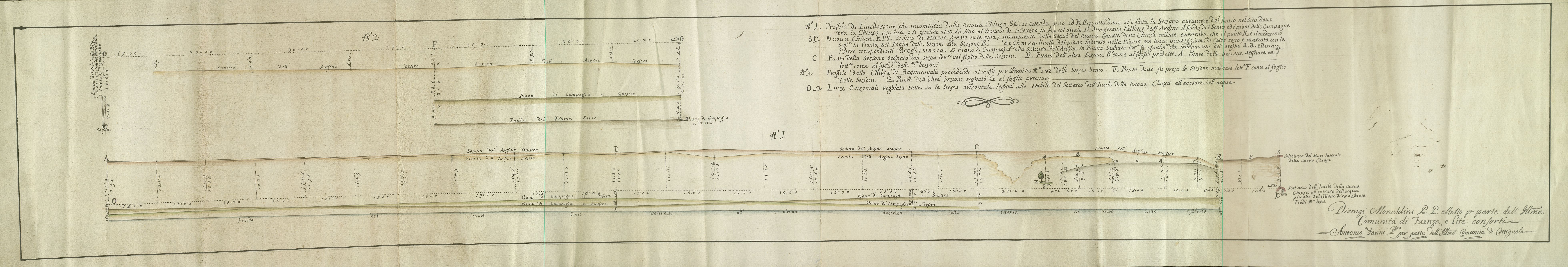 Note: Profilo di livellazione fra le chiuse realizzato dai due periti per conto rispettivamente di Faenza e di Cottignola.