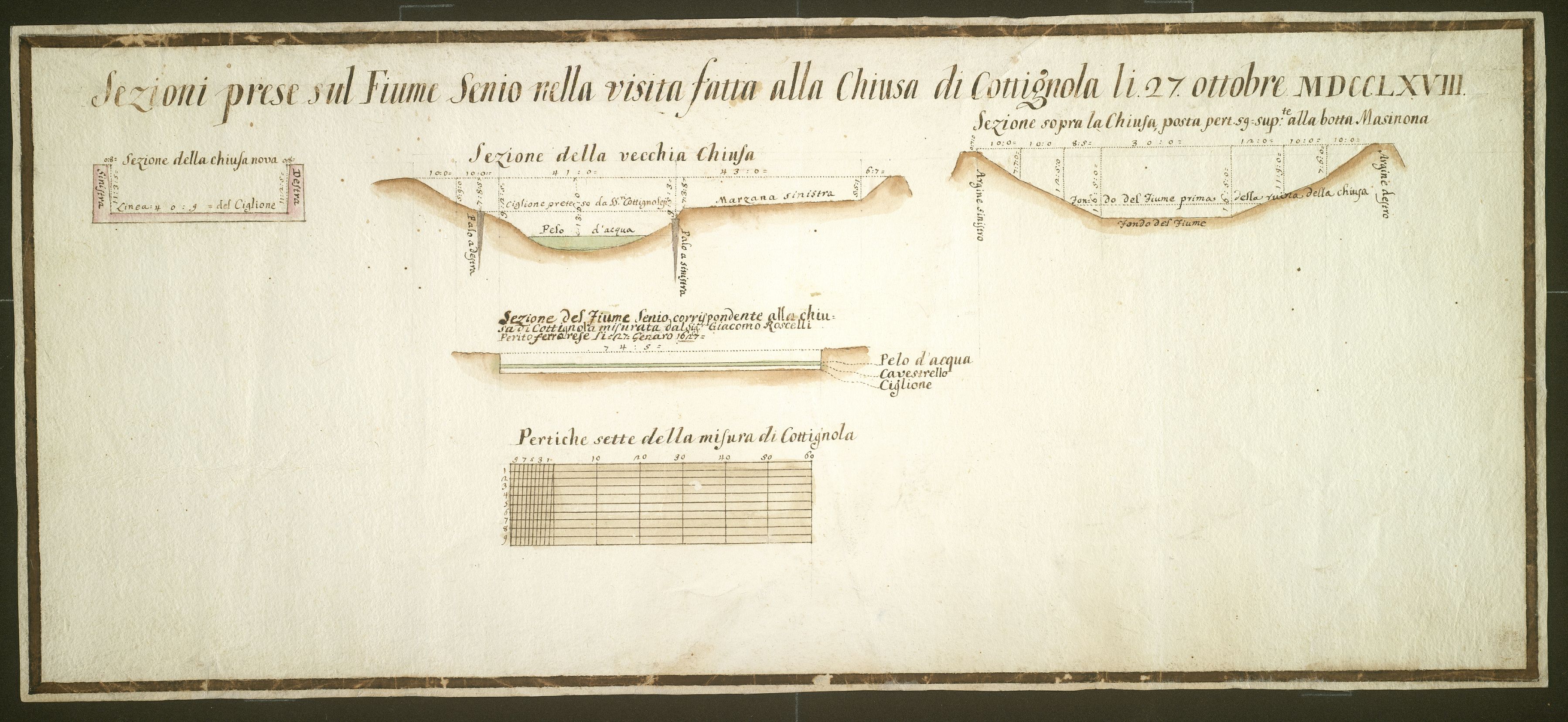 Sezioni prese sul fiume Senio nella visita fatta alla chiusa di Cottignola 7 ottobre 1627.