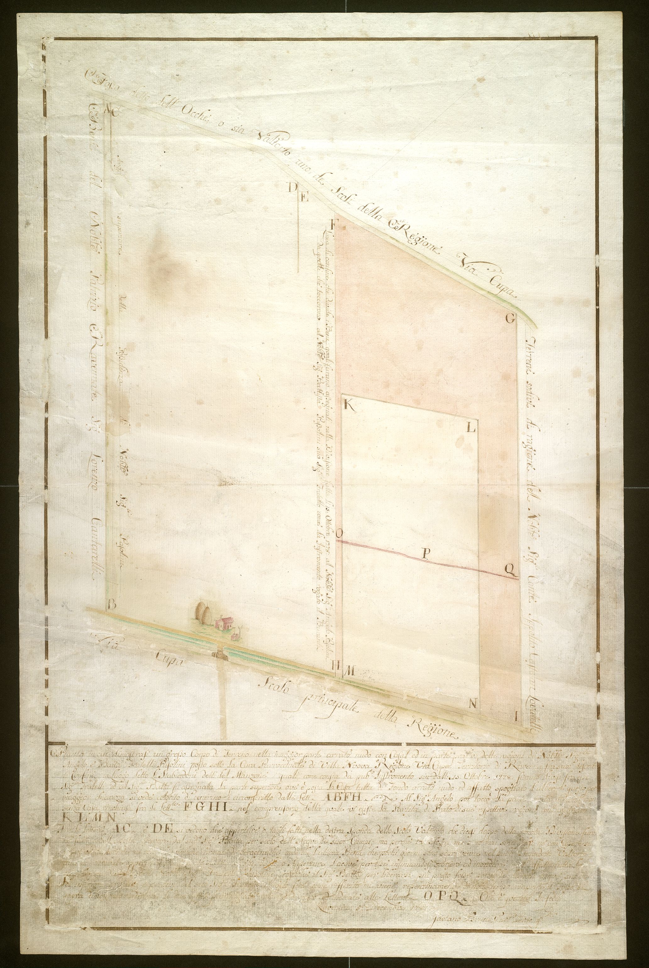 Pianta in cui dimostrarsi un grosso corpo di terreno nella maggior parte arrato nudo con casale ed in parte prativo delle ragione de... fratelli Pasolini posto sotto la cura parrocchiale di Villa Nuova regione via Cupa territorio di Ravenna fra suoi descritti confini il luogo detto Li Stabiadoni detti del Manzone …