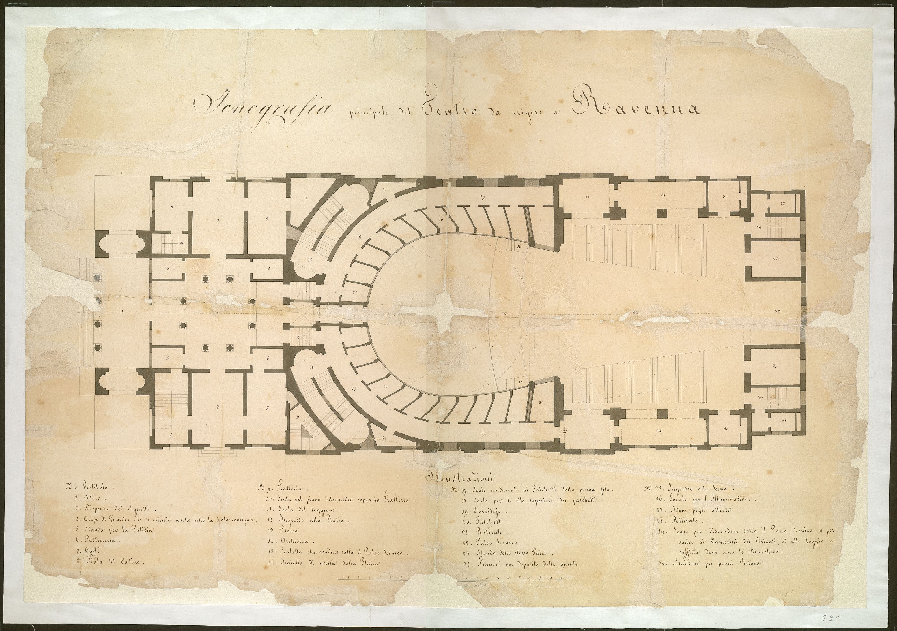 Note: pianta del teatro Alighieri realizzata a china (1840 ca.).