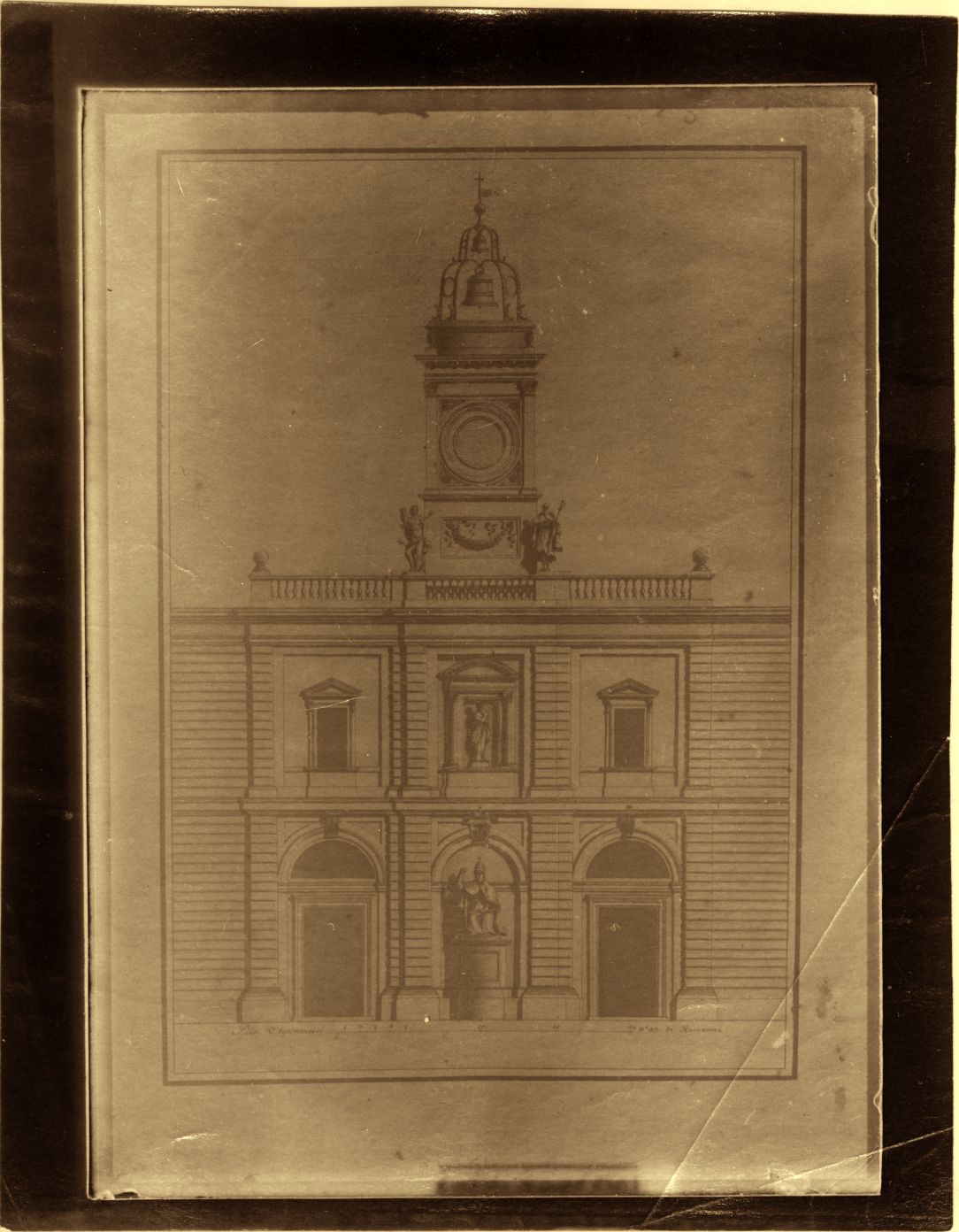 Statua di Alessandro 7., sotto l'arco centrale della Fabbrica dell'orologio,quale si vide dal 1788 al 1797, dal disegno progetto di Camillo Morigia