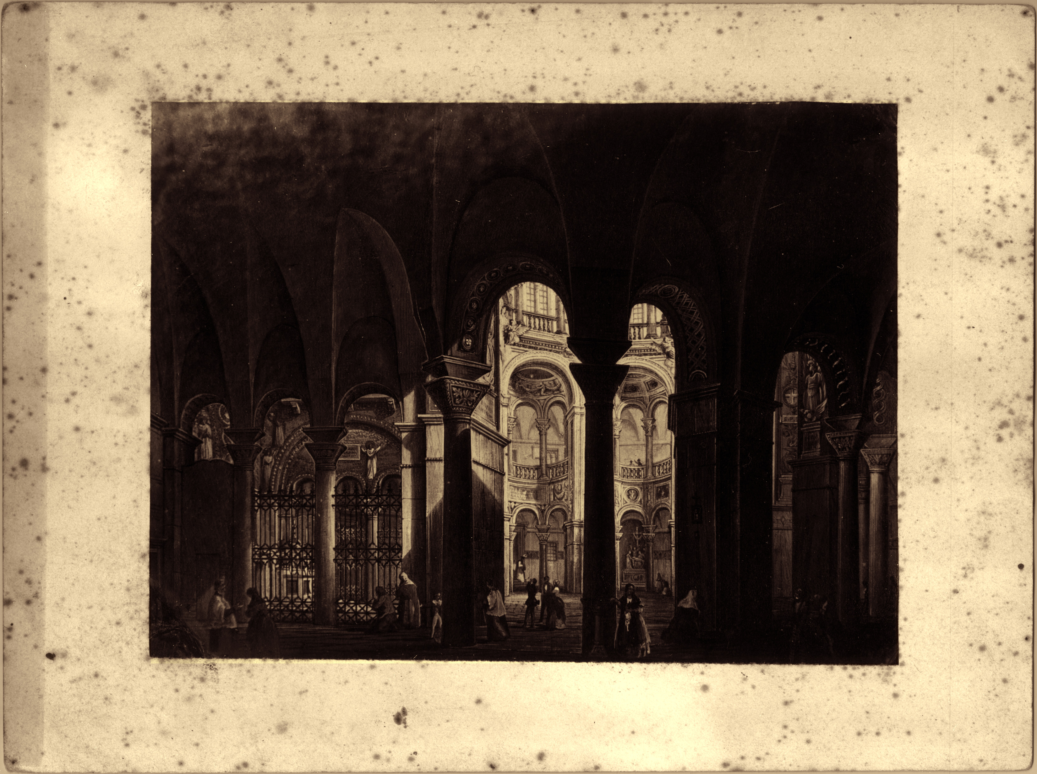 Litografia dell'interno del Tempio di S. Vitale di James Moore (Sec. 19)