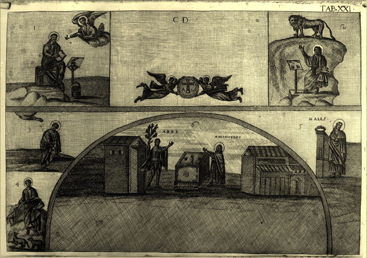 Stampa di alcuni episodi della Bibbia che si trovano nella parte destra del presbiterio della Basilica di S. Vitale a Ravenna