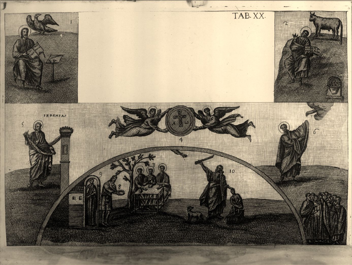 Stampa che raffigura alcuni episodi della Bibbia che si trovano nella parete sinistra della Basilica di S. Vitale a Ravenna