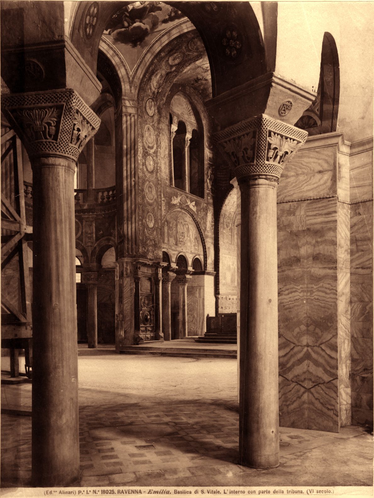 Ravenna-Emilia : l'interno con parte della tribuna della Basilica di Vitale : Sec. VI