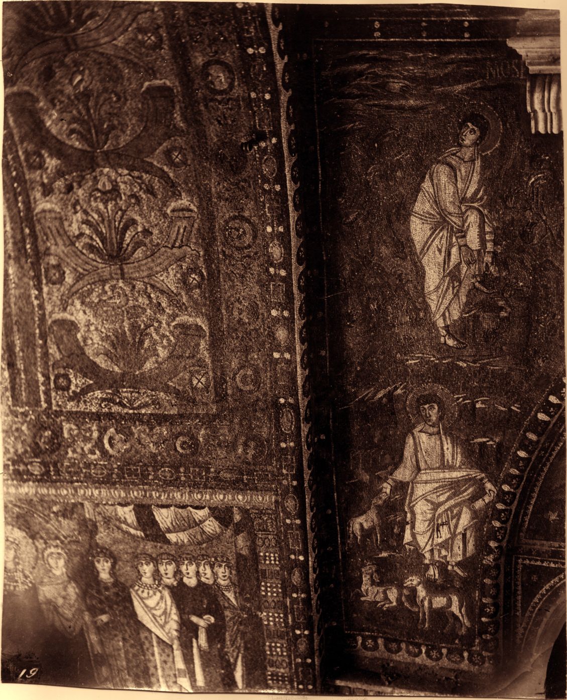 Ravenna : Basilica di S. Vitale : particolare del mosaico che raffigura Mosè che si scioglie i calzari e porta le pecore al pascolo