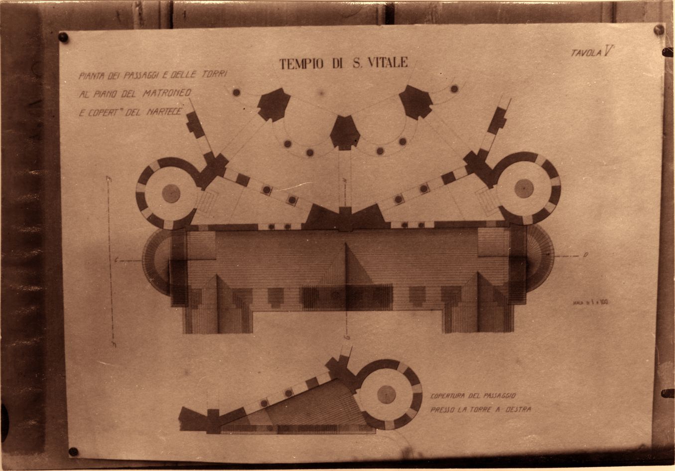 Pianta dei passaggi e delle torri al piano del matroneo e copertura del nartece della Basilica di S. Vitale a Ravenna