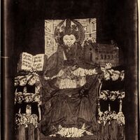 Biblioteca Classense : xilografia che rappresenta S. Agostino che consegna le regole all'ordine dei frati predicatori |