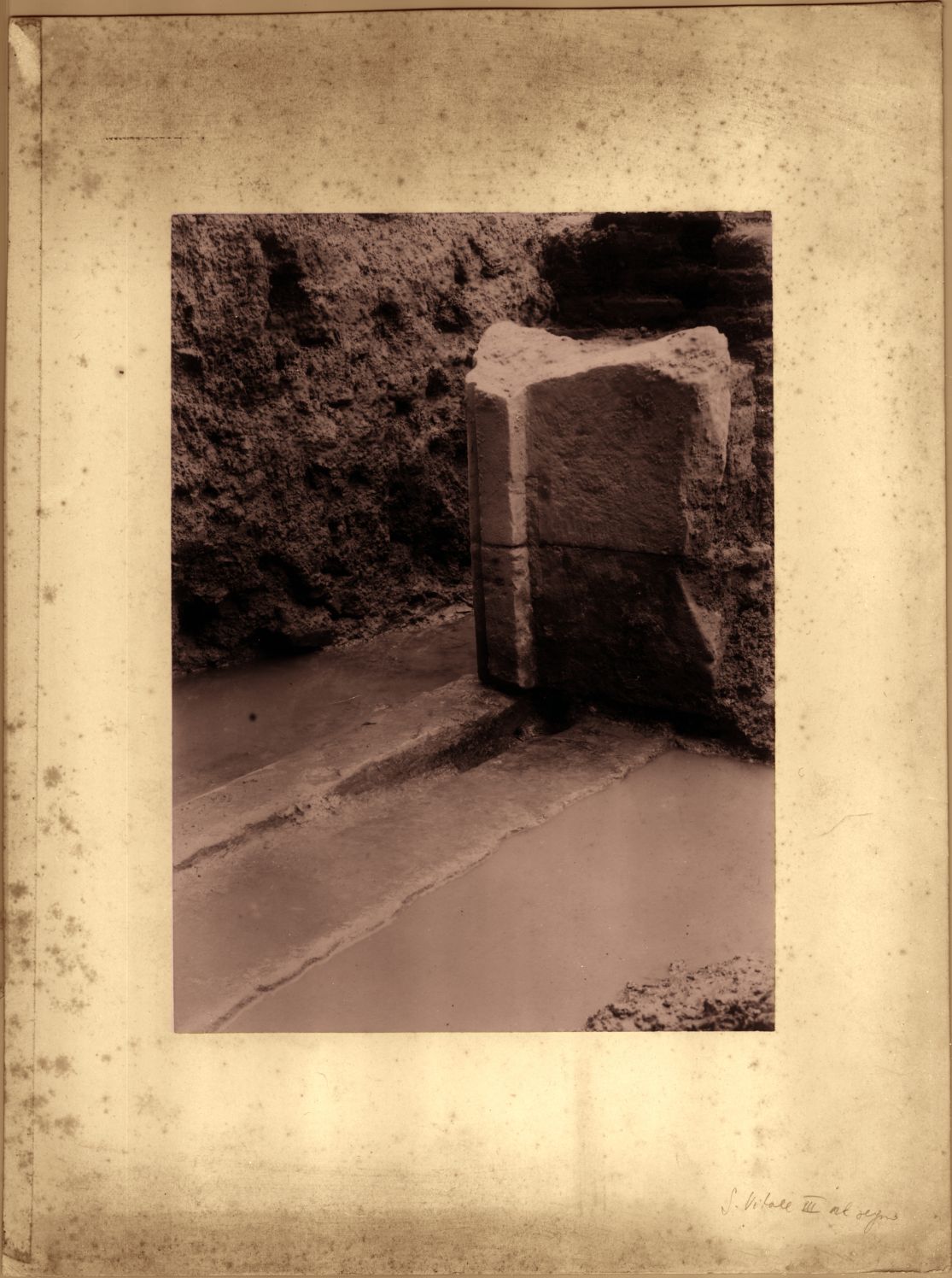 Frammento dello stipite di marmo d'Istria nella porta centrale del quadriportico in S. Vitale a Ravenna, con la soglia di Rosso di Verona