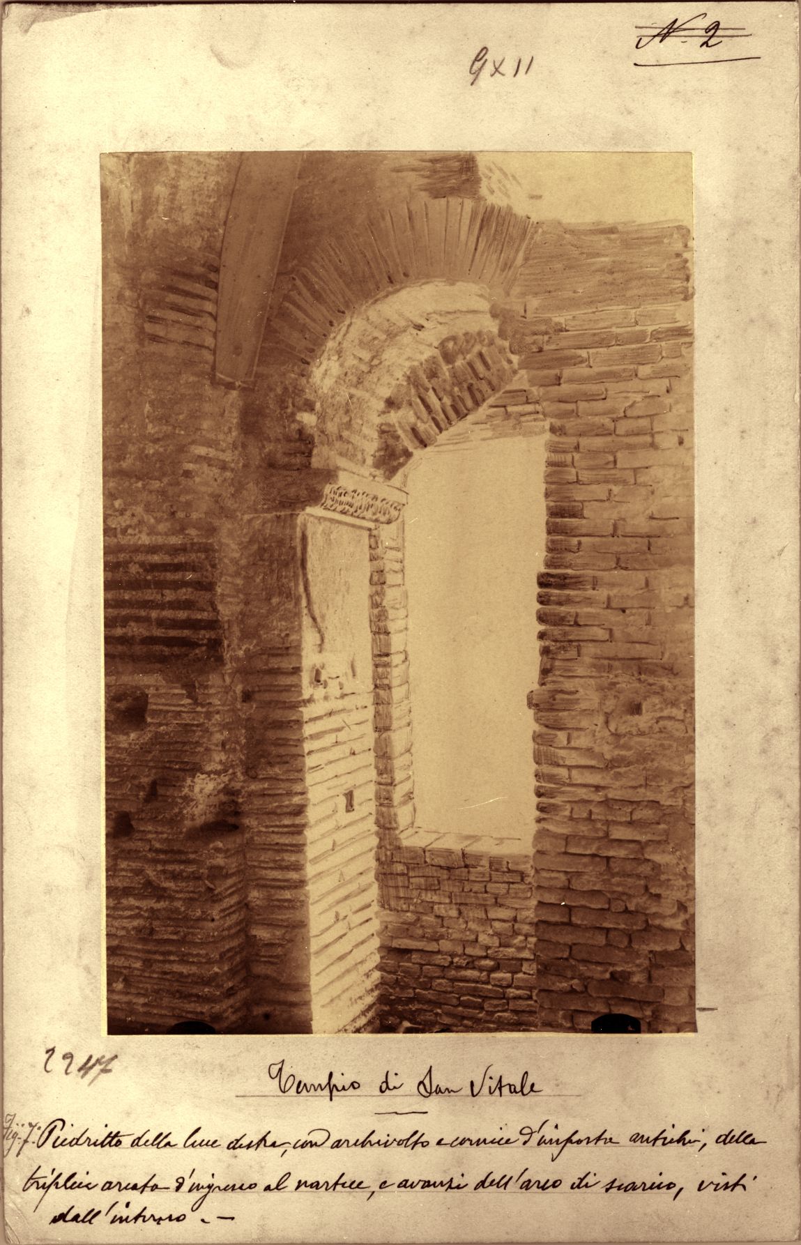 Piedritto della luna destra, con archivolto, avanzi dell'arco di scarico, visti dall'interno della Basilica di S. Vitale a Ravenna