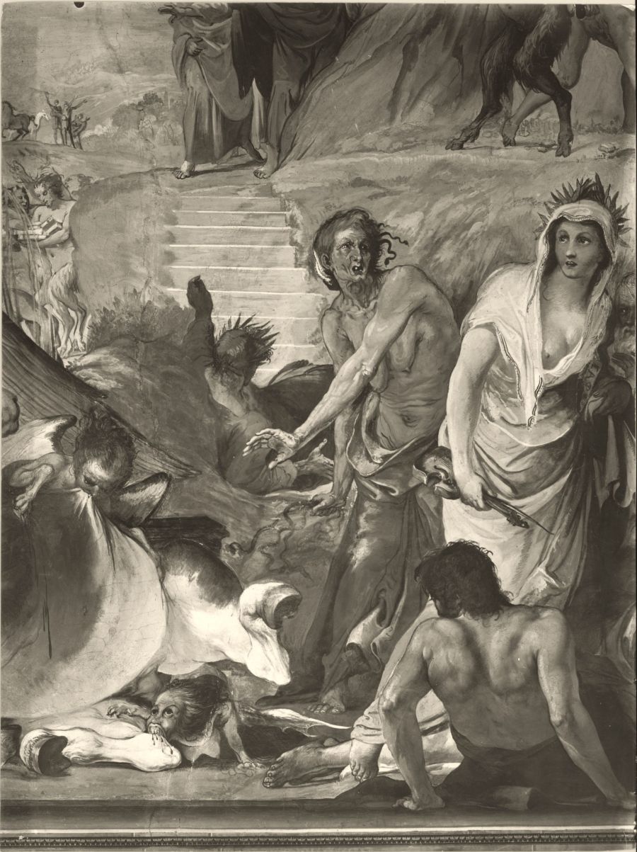 Particolare del dipinto dei gironi dell'Inferno dantesco
