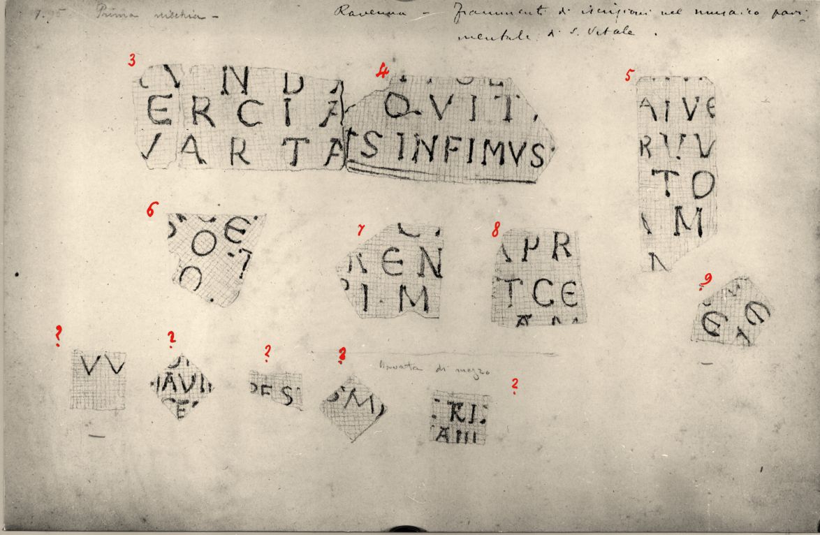 Frammenti di incisione nel mosaico pavimentale di S. Vitale : Ravenna