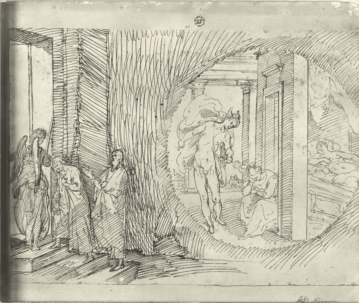 Disegno di scene dal Purgatorio dantesco : Purg. XIV, vers. 139