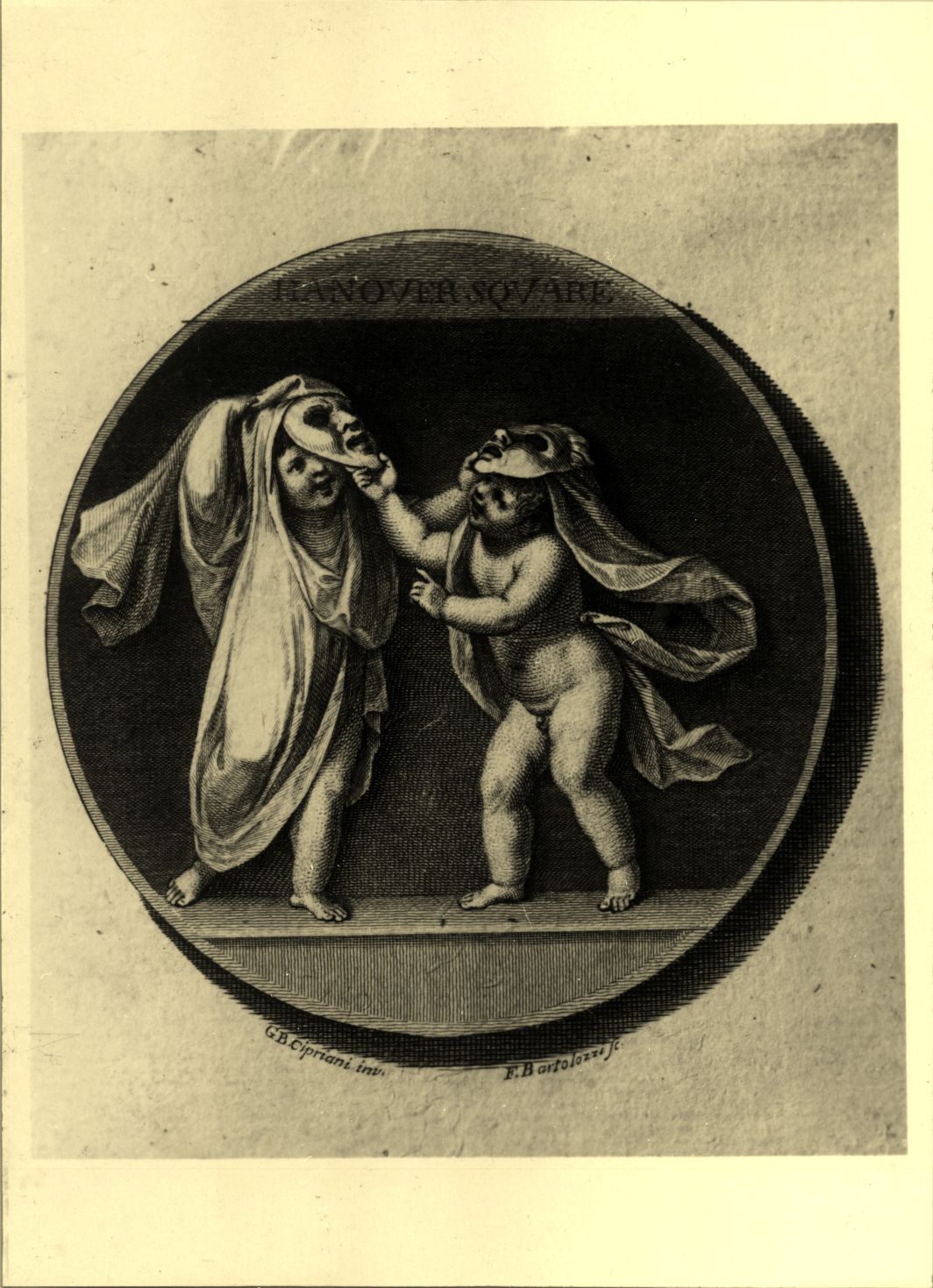 Incisione di putti con maschera di G. B. Cipriani inventario e F. Bartolozzi sc. in cima alla incisione : Hanover square