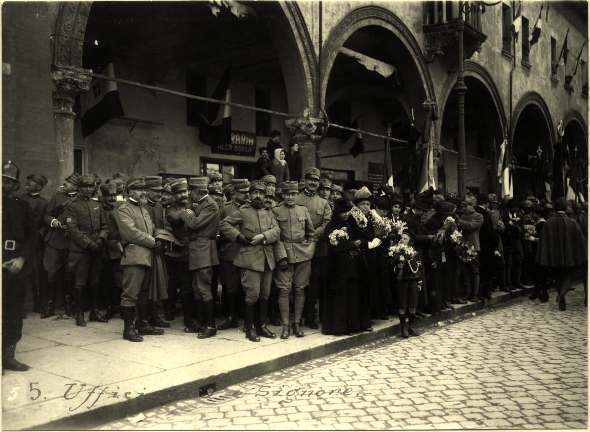 Consegna dello stendardo di Ravenna al 28. di Fanteria : ufficiali e signore