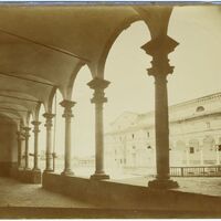 Veduta esterna di un edificio con arcate e colonne |