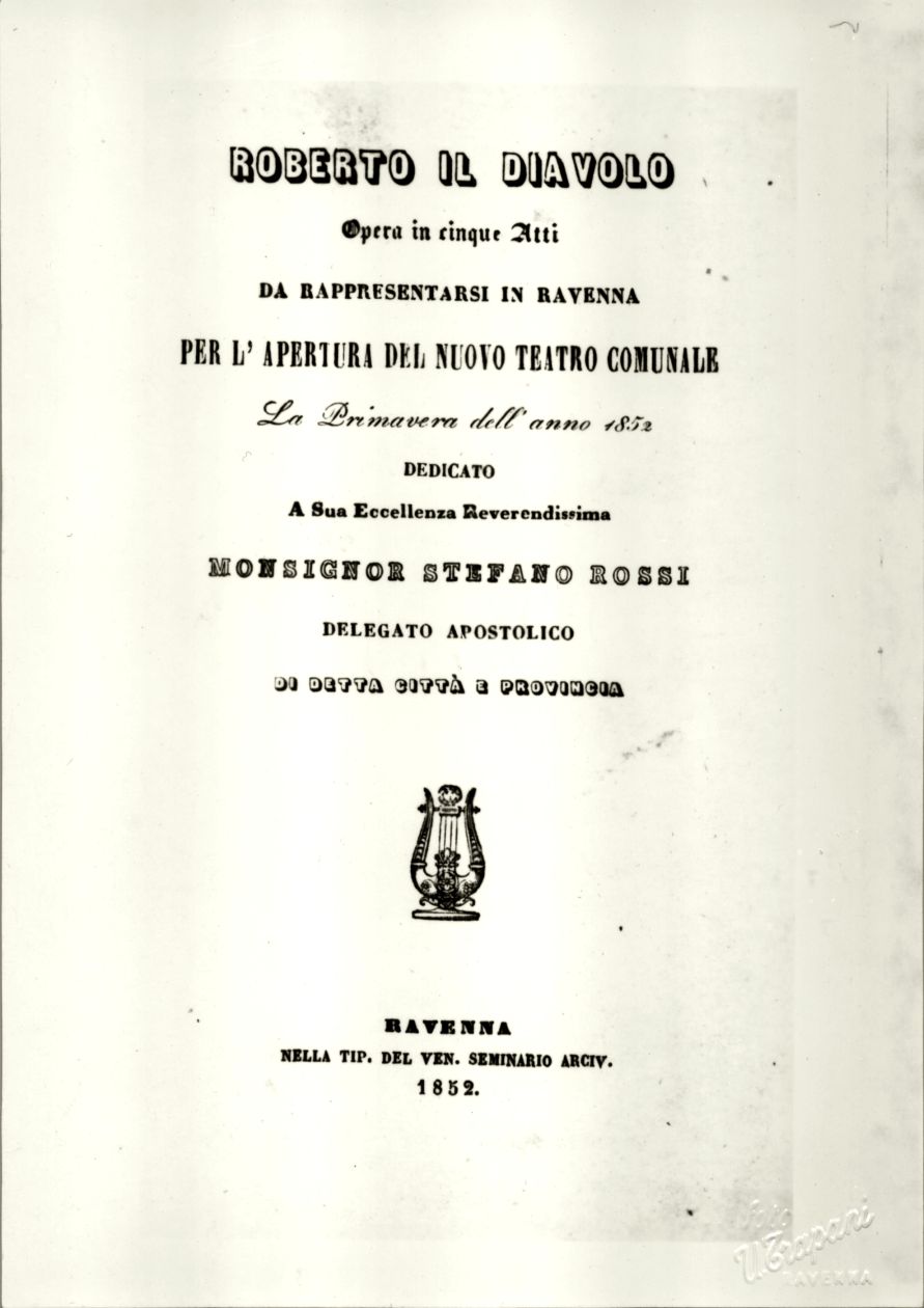Locandina teatrale di Roberto il diavolo rappresentata a Ravenna nella primavera del 1852