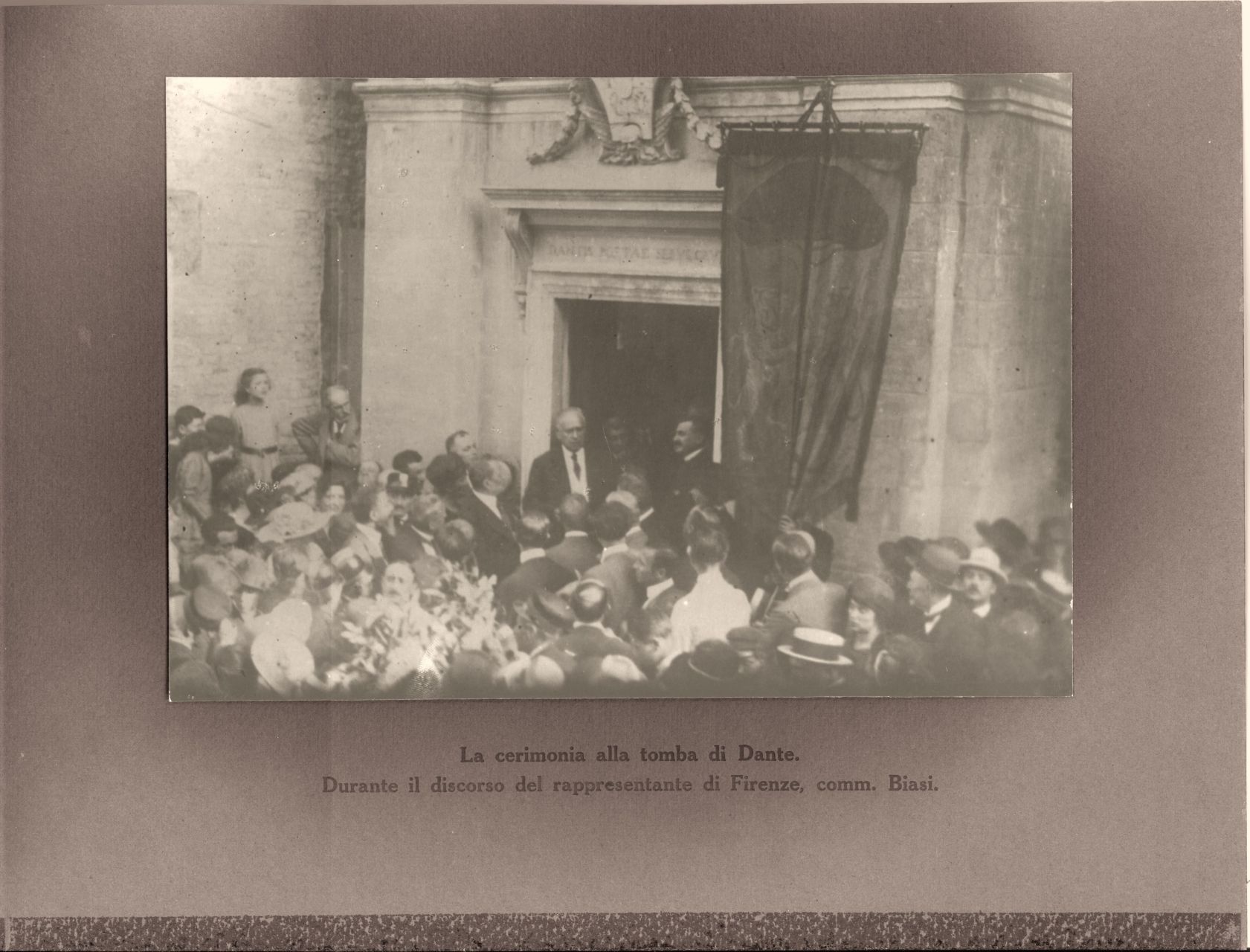 La cerimonia alla Tomba di Dante durante il discorso del rapp. di Firenze