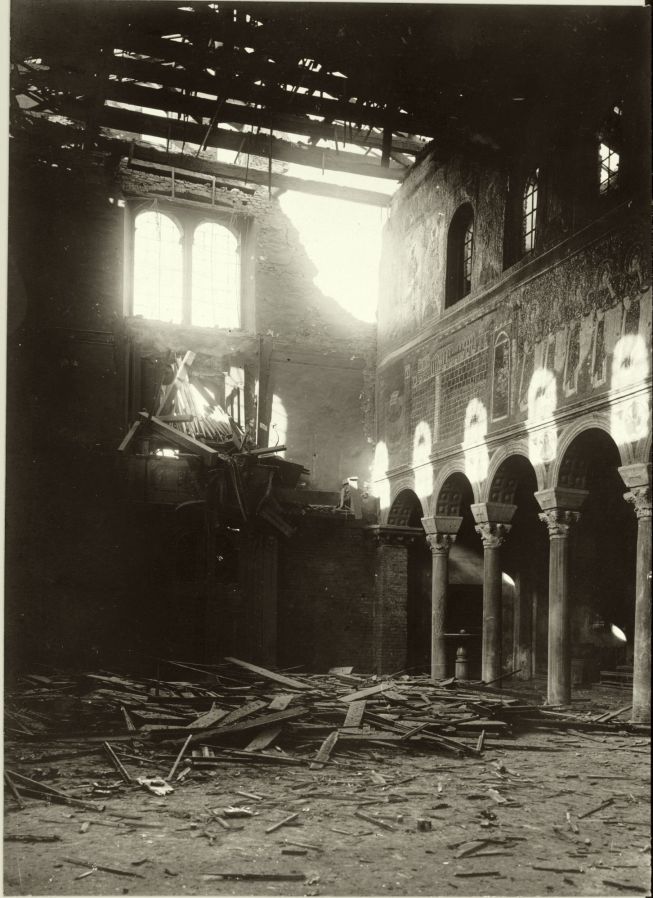 Ravenna : interno della Basilica di S. Apollinare Nuovo dopo il bombardamento del Febbraio 1916