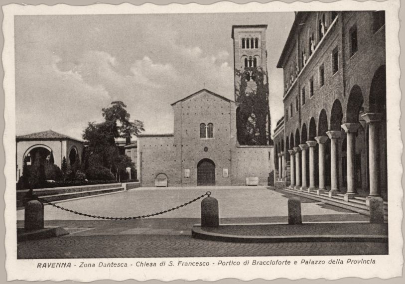 Ravenna : zona dantesca : Chiesa di S. Francesco, portico di Braccioforte e Palazzo della Provincia