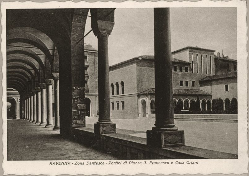 Ravenna : zona dantesca : portici di Piazza S. Francesco e Casa Oriani