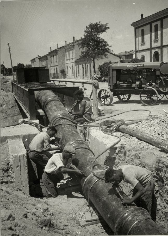Ribattitura dei giunti della condotta da Torre Pedrera a Ravenna con martelli pneumatici