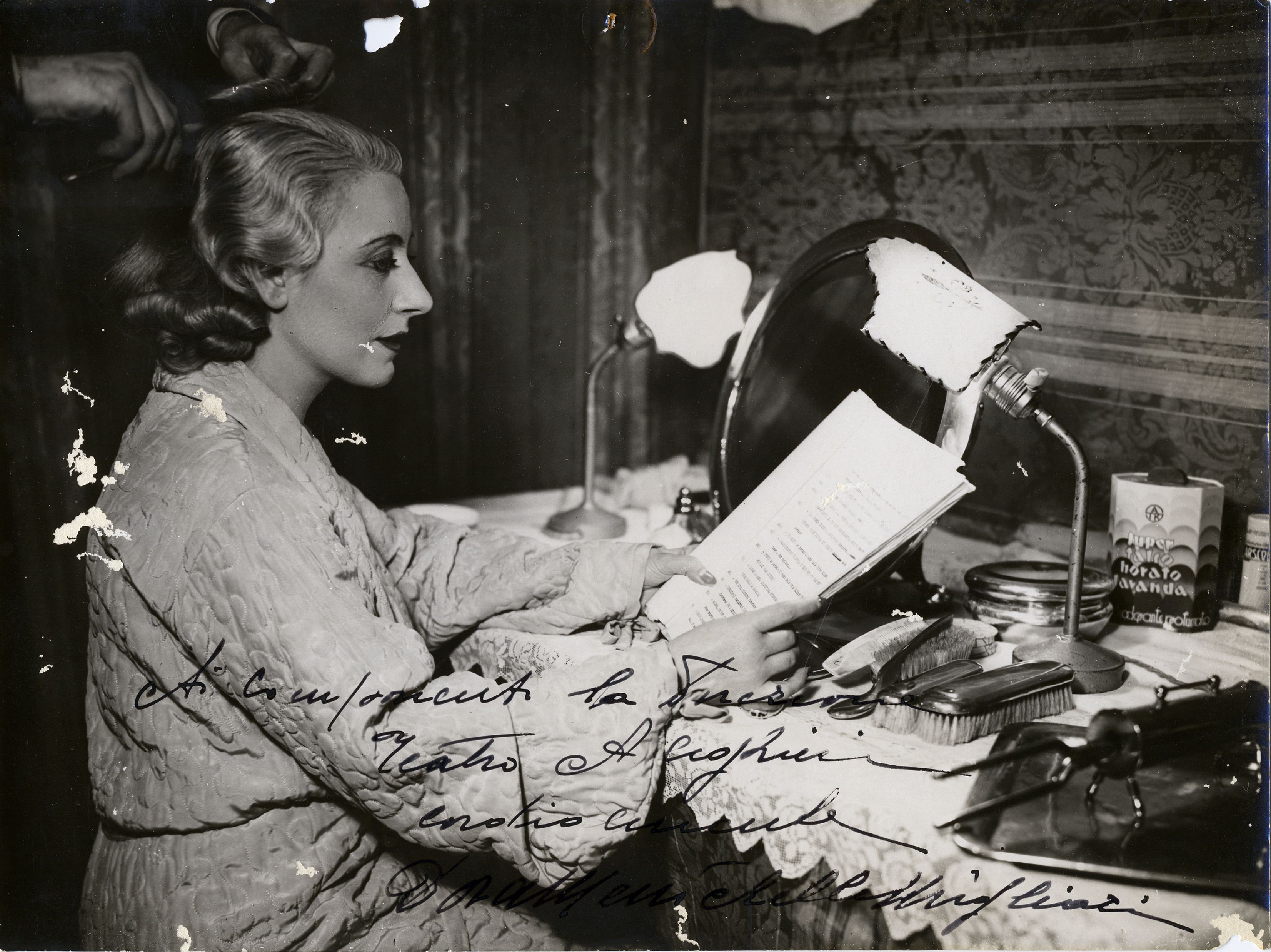Sul verso della foto compare il timbro: "Ministero della cultura popolare, Direzione generale del teatro, Archivio fotografico"