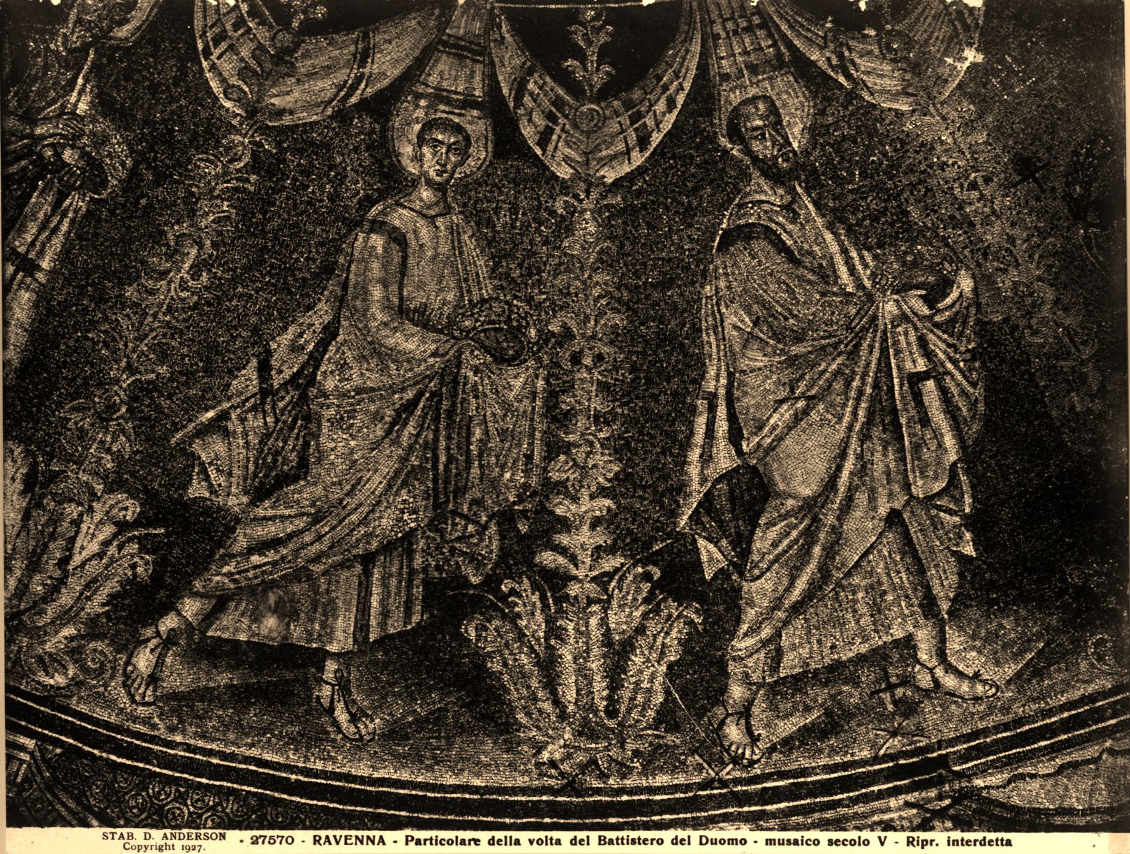 Ravenna : Particolare della volta del Battistero del Duomo : Musaico : V. sec