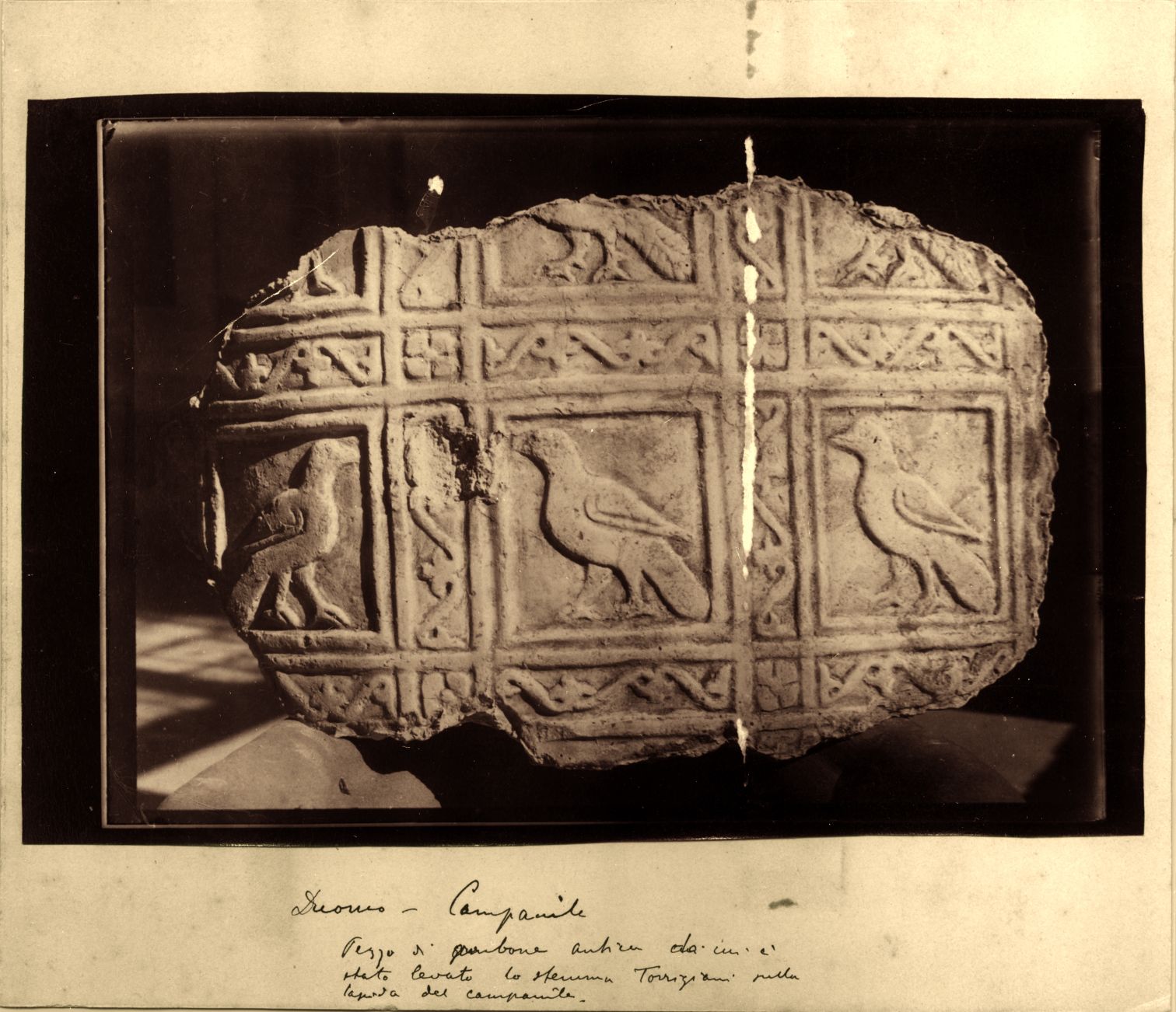 Duomo : Campanile : Pezzo di ambone da cui è stato levato lo stemma Torriziani sulla ... del campanile