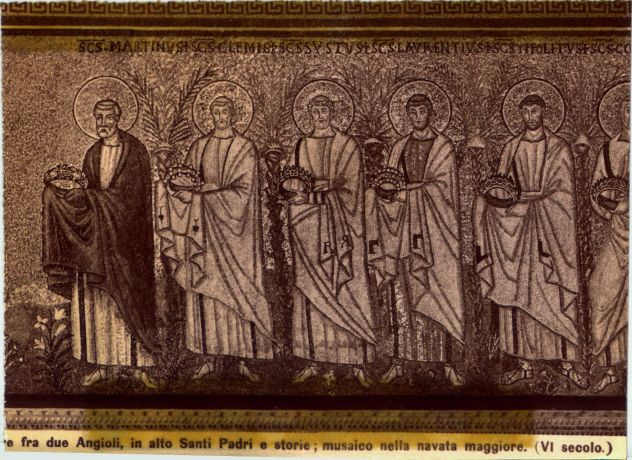 Ravenna : S. Apollinare Nuovo...in alto Santi Padri e storie : musaico nella navata maggiore