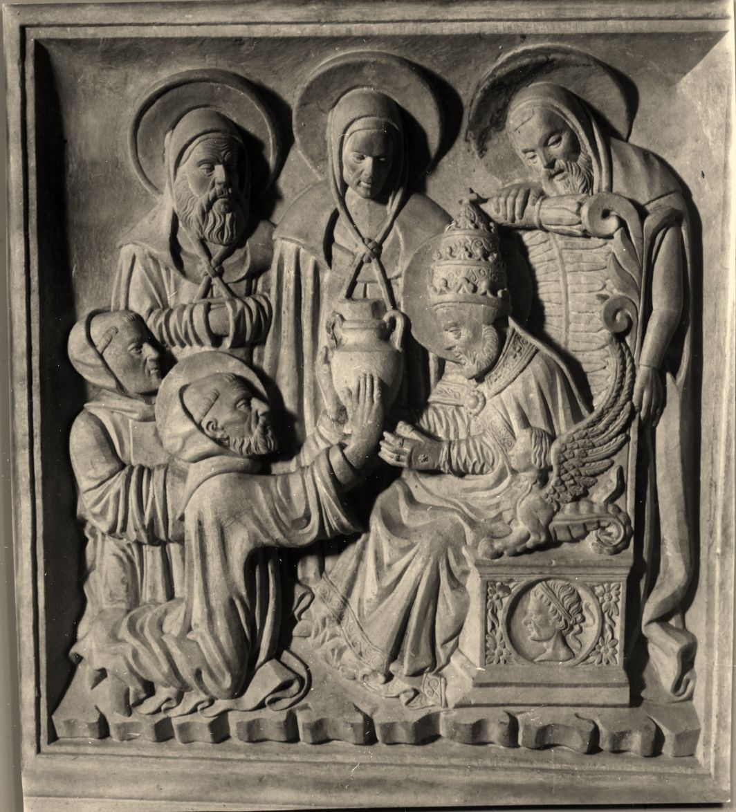 Bobbio, Sepolcro di S. Colombano : Il santo riceve l'idria da San Gregorio Magno