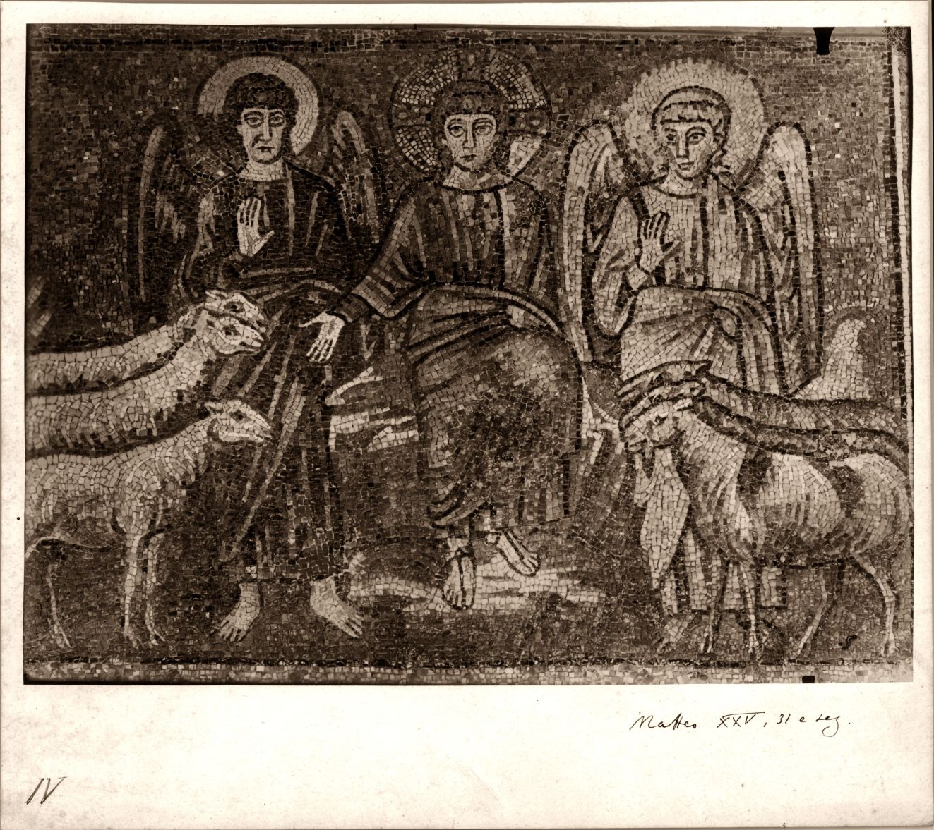 Ravenna : musaici di S. Apollinare Nuovo : quadri con episodi della vita di Gesù : Cristo Giudice: le pecore bianche e macchiate : Matteo XXV, 31 e seg