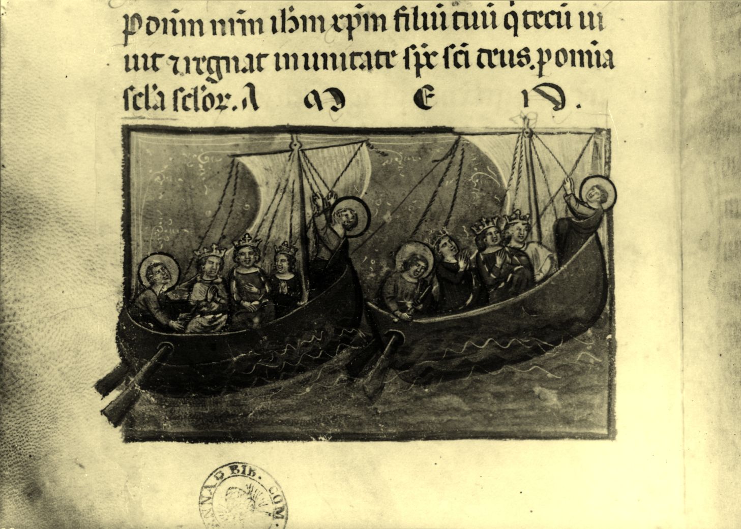 Miniatura che rappresenta Galla Placidia coi figli Valentiniano e Onoria durante la tempesta