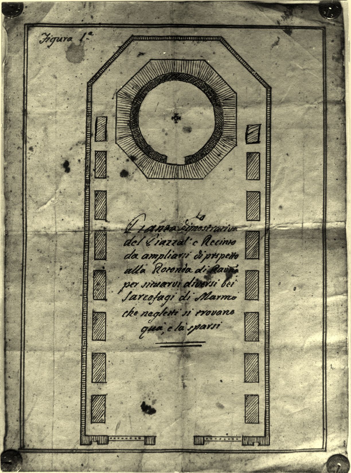 Disegno della pianta dimostrativa del piazzale e recinto da ampliarsi di prospetto alla Rotonda di Ravenna per situarvi diversi bei sarcofagi