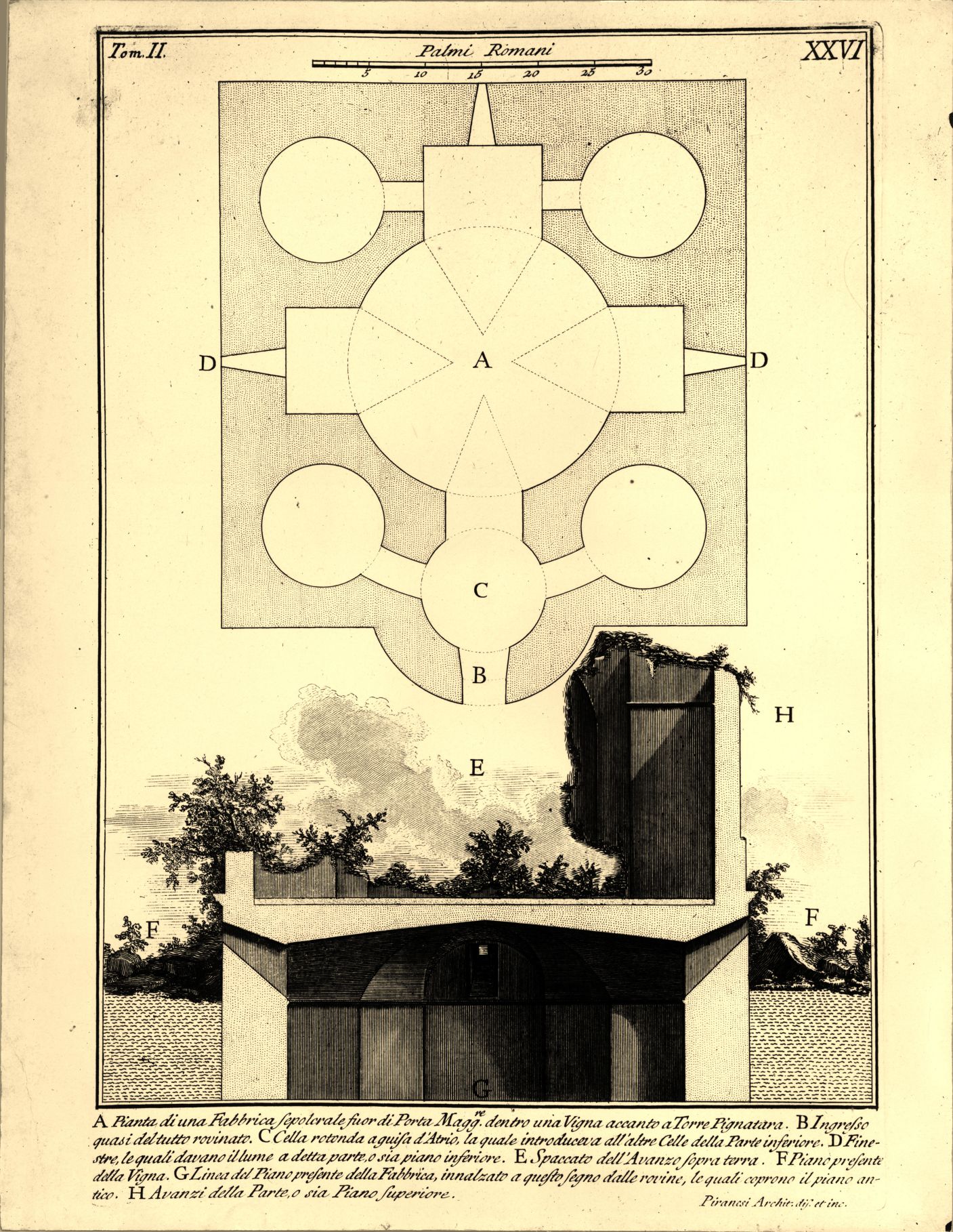 Piranesi : Archit. dis. et inc., Tomo II : Pianta di una Fabbrica sepolcrale fuor di Porta Maggiore dentro una vigna accanto a Torre Pignatara