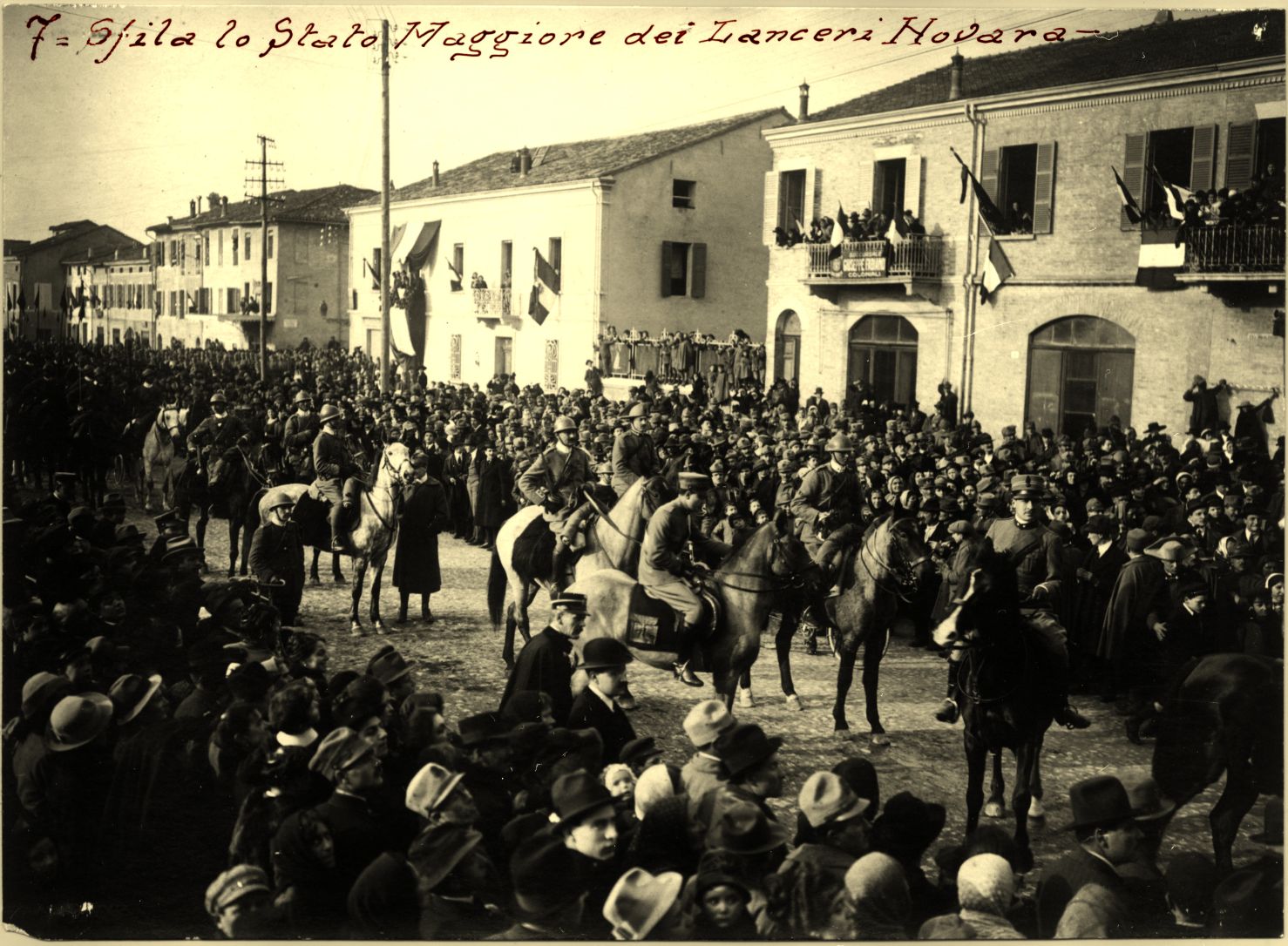 Nota manoscritta: "7= Sfila lo Stato Maggiore dei Lanceri Novara"