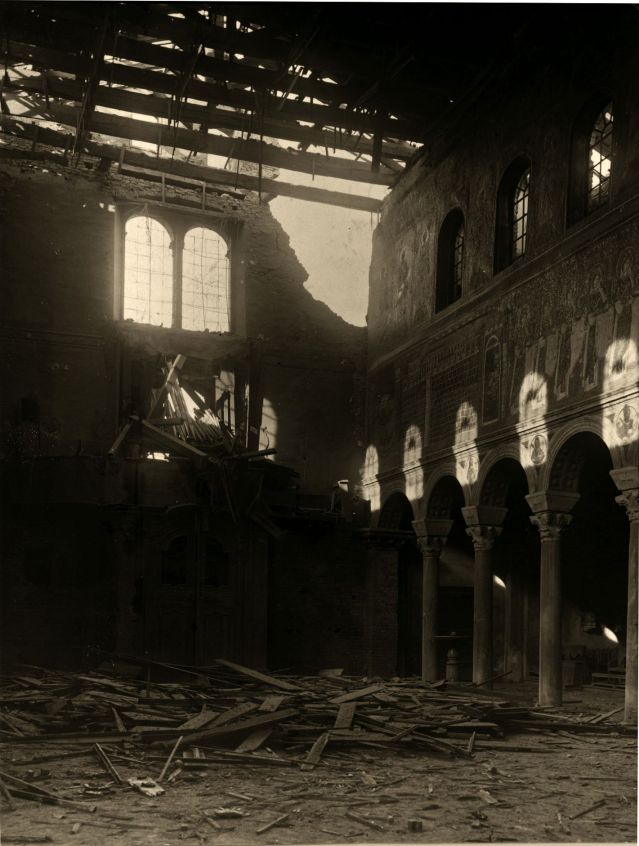 Ravenna 12 febbraio 1916 : L'interno della celebre Basilica di S. Apollinare Nuovo dopo il bombardamento aereo