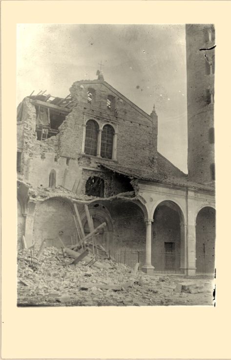 Ravenna : facciata della Basilica di S. Apollinare Nuovo dopo il bombardamento del Febbraio 1916