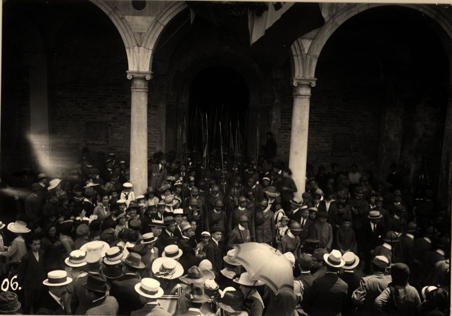 Ravenna : truppe davanti a S. Apollinare Nuovo per la benedizione della guerra di Libia 1908