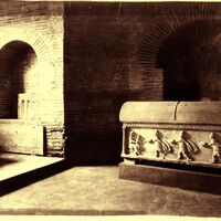 Sarcofago dell'esarca Isaacio nella Cappella Sancta Sanctorum prima dei restauri nella Basilica di S. Vitale a Ravenna Parole chiave Still Image