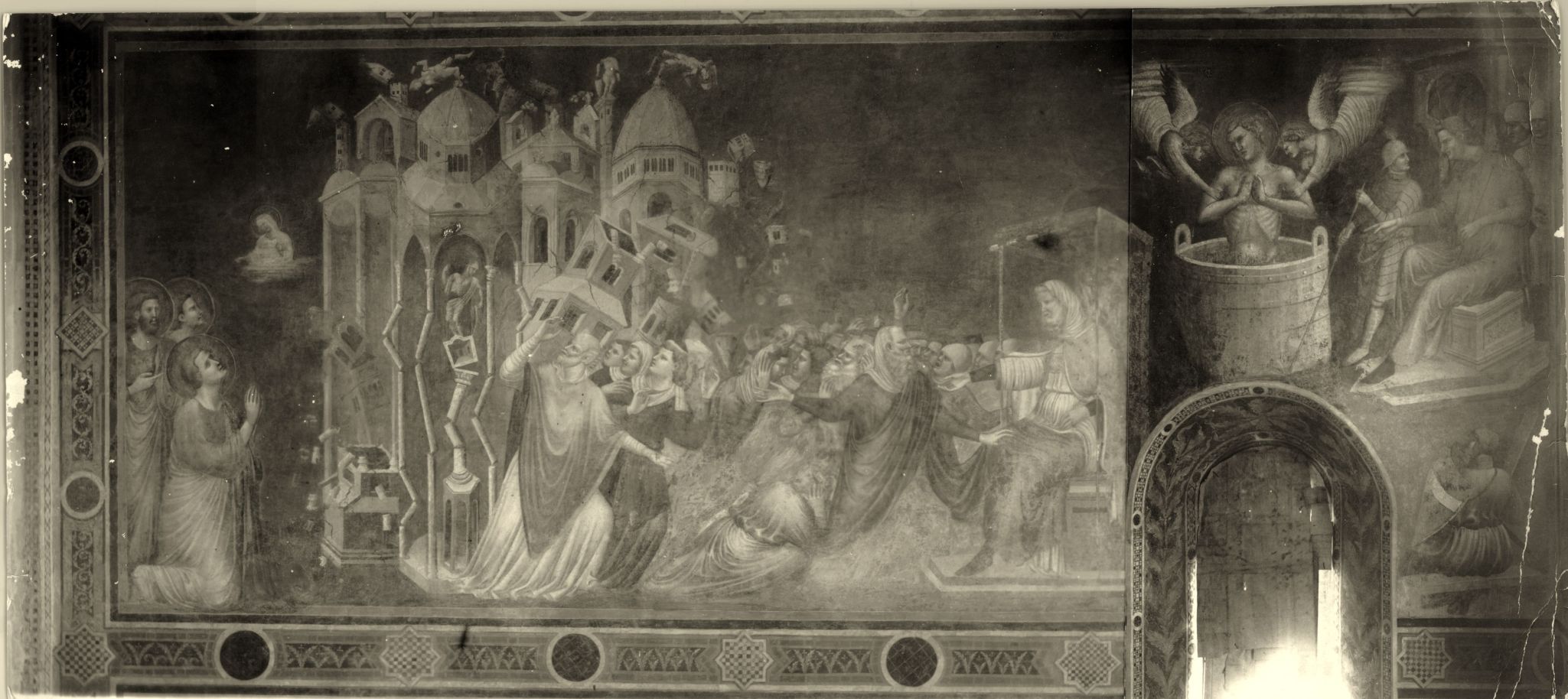 Rimini : Abside di S. Agostino in S. Giovanni Evangelista : affresco laterale sinistro rappresentante il crollo dei templi pagani in Efeso e il martirio del Santo