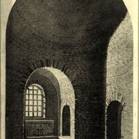 Disegno di Azzaroni del restauro della facciata alla quale era stata nel Sec. 16. addossata la Cappella del Sacramento nella basilica di S. Vitale a Ravenna |