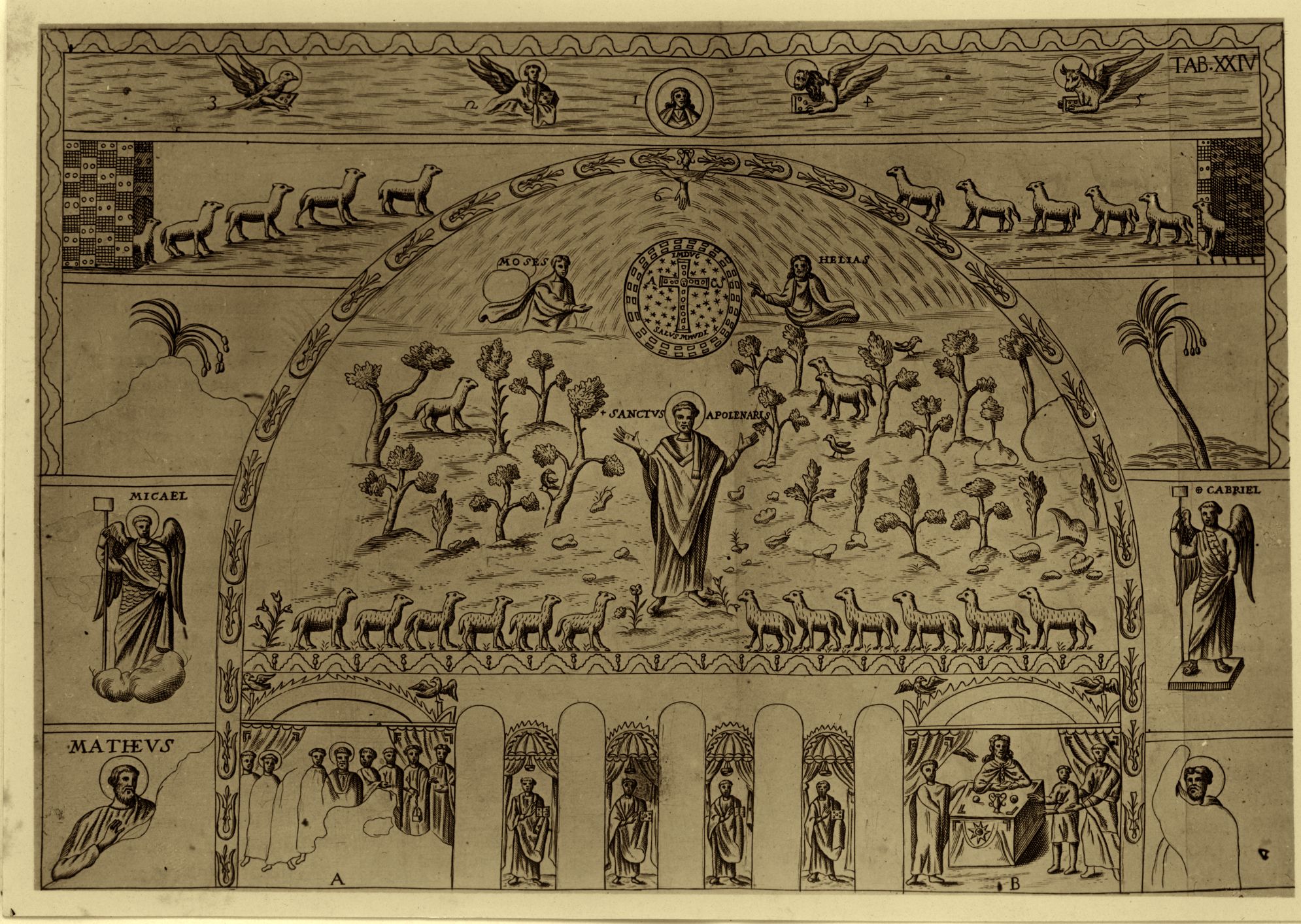 Incisione che rappresenta il musaico dell'abside di S. Apollinare in Classe a Ravenna
