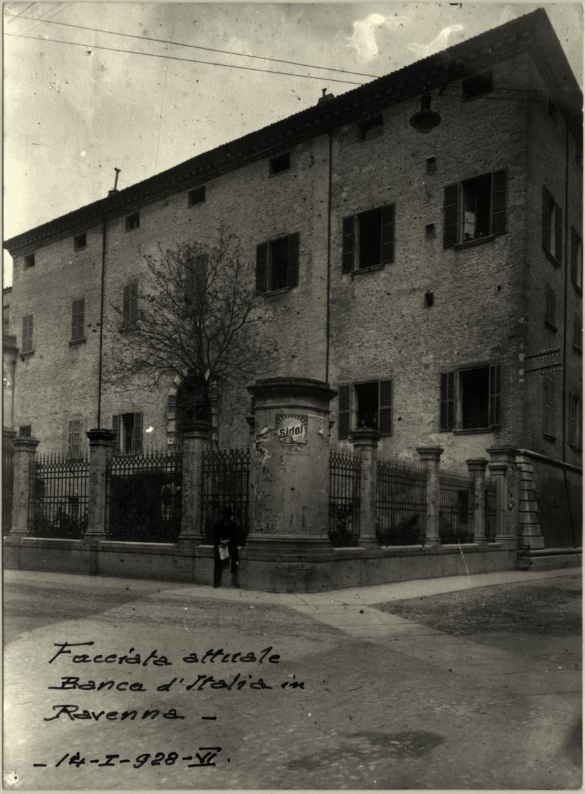 Nota manoscritta: "Facciata attuale Banca d'Italia in Ravenna. 14-I-928-VI"
